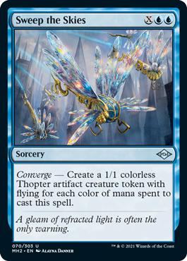 | Text (eng) Converge - Create a 1/1 colorless Thopter artifact creature token with flying for each color of mana spent to cast this spell. | |
