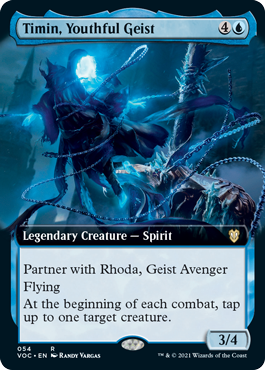 | Text (eng) Partner with Rhoda, Geist Avenger (When this creature enters the battlefield, target player may put Rhoda into their hand from their library, then shuffle.) Flying At the beginning of each combat, tap up to one target creature. | |