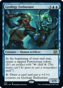 | Text (eng) At the beginning of your end step, create a tapped Powerstone token. (Its an artifact with ??TAP: Add (c). This mana cant be spent to cast a nonartifact spell.??) 6: Draw a card and put a +1/+1 counter on Geology Enthusiast. | |