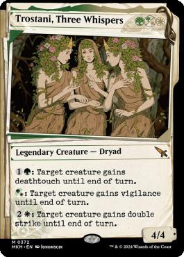 | Text (eng) 1G: Target creature gains deathtouch until end of turn. (g/w): Target creature gains vigilance until end of turn. 2W: Target creature gains double strike until end of turn. | |