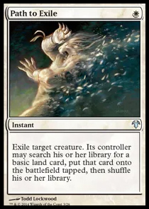 | Text (eng) Exile target creature. Its controller may search his or her library for a basic land card, put that card onto the battlefield tapped, then shuffle his or her library. | |