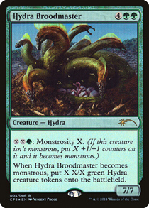 | Text (eng) XXG: Monstrosity X. (If this creature isnt monstrous, put X +1/+1 counters on it and it becomes monstrous.) When Hydra Broodmaster becomes monstrous, put X X/X green Hydra creature tokens onto the battlefield. | |