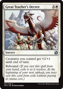 | Text | Creatures you control get +2/+1 until end of turn. Rebound (If you cast this spell from your hand, exile it as it resolves. At the beginning of your next upkeep, you may cast this card from exile without paying its mana cost.) | |