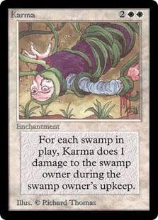 | Text | Karma does 1 damage to player for each swamp player has in play. Damage occurs during player's upkeep. Affects both players. | |